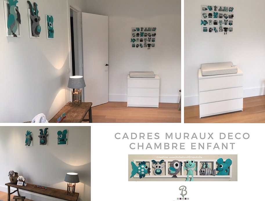 Décoration murale ‘LES AMIS BICHAT’ tons de gris et turquoise / aqua.